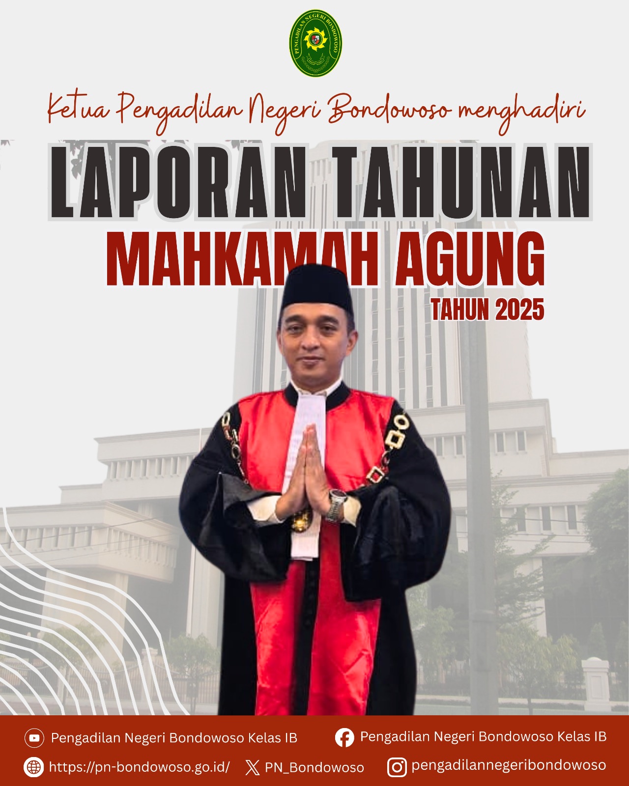 Bertempat di Balairung Mahkamah Agung Republik Indonesia, pada hari ini Ketua Pengadilan Negeri Bondowoso, Bapak Rony Suata, S.H., M.H mengikuti rangkaian kegiatan Sidang Istimewa Laporan Tahunan Mahkamah Agung tahun 2025.