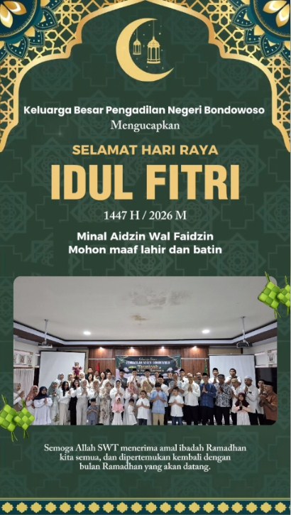 Keluarga besar Pengadilan Negeri Bondowoso mengucapkan Selamat Hari Raya Idul Fitri 1447H.