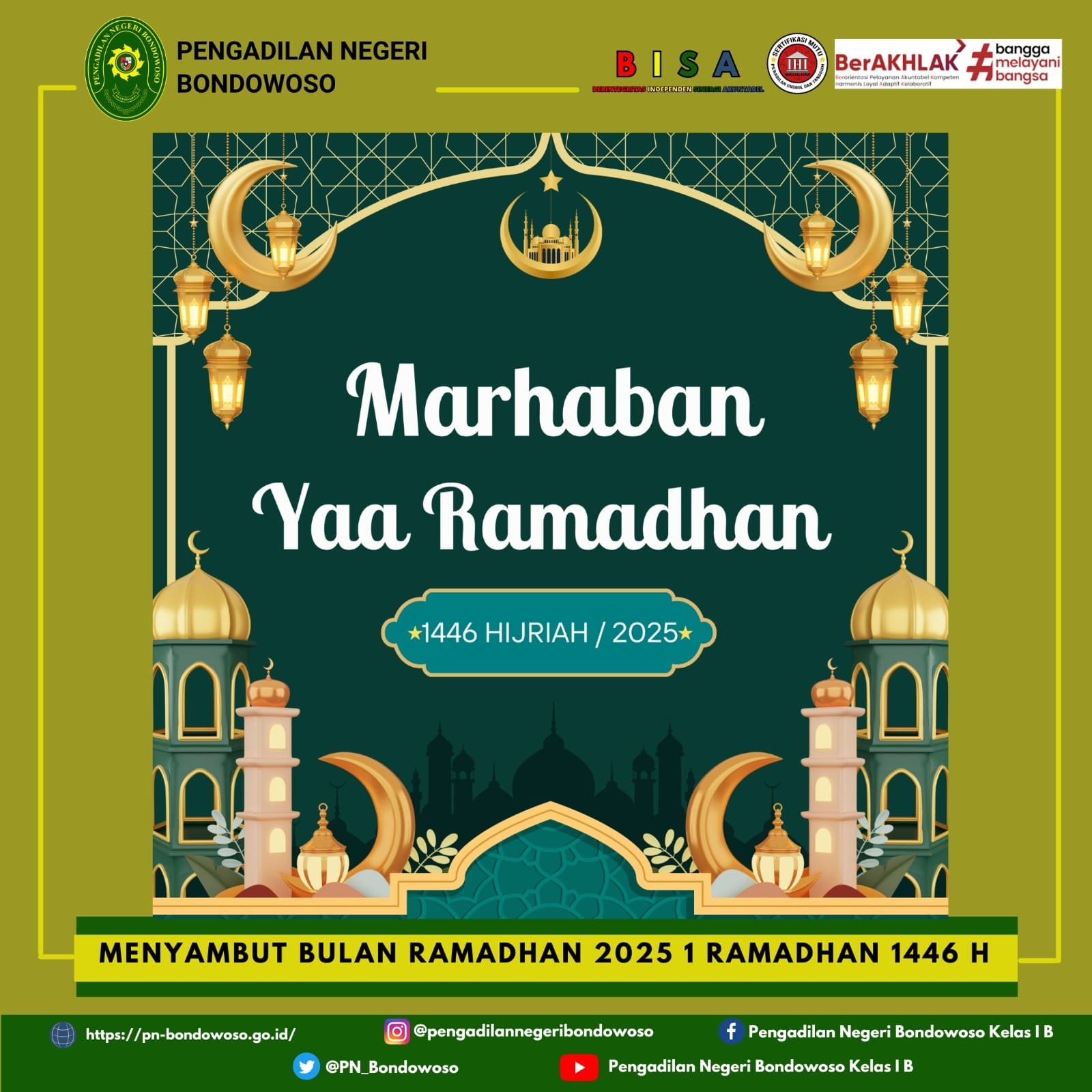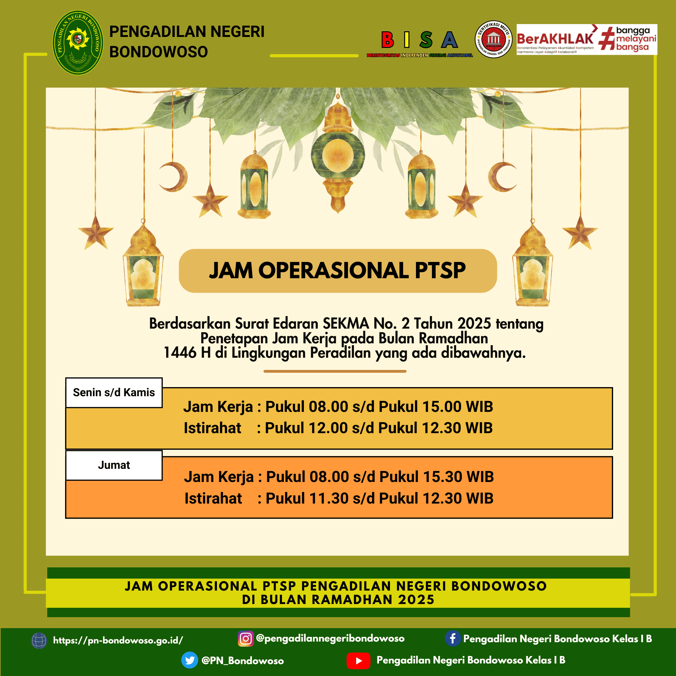 Pemberitahuan Jam Kerja Pengadilan Negeri Bondowoso Selama Bulan Ramadhan 1446 H
