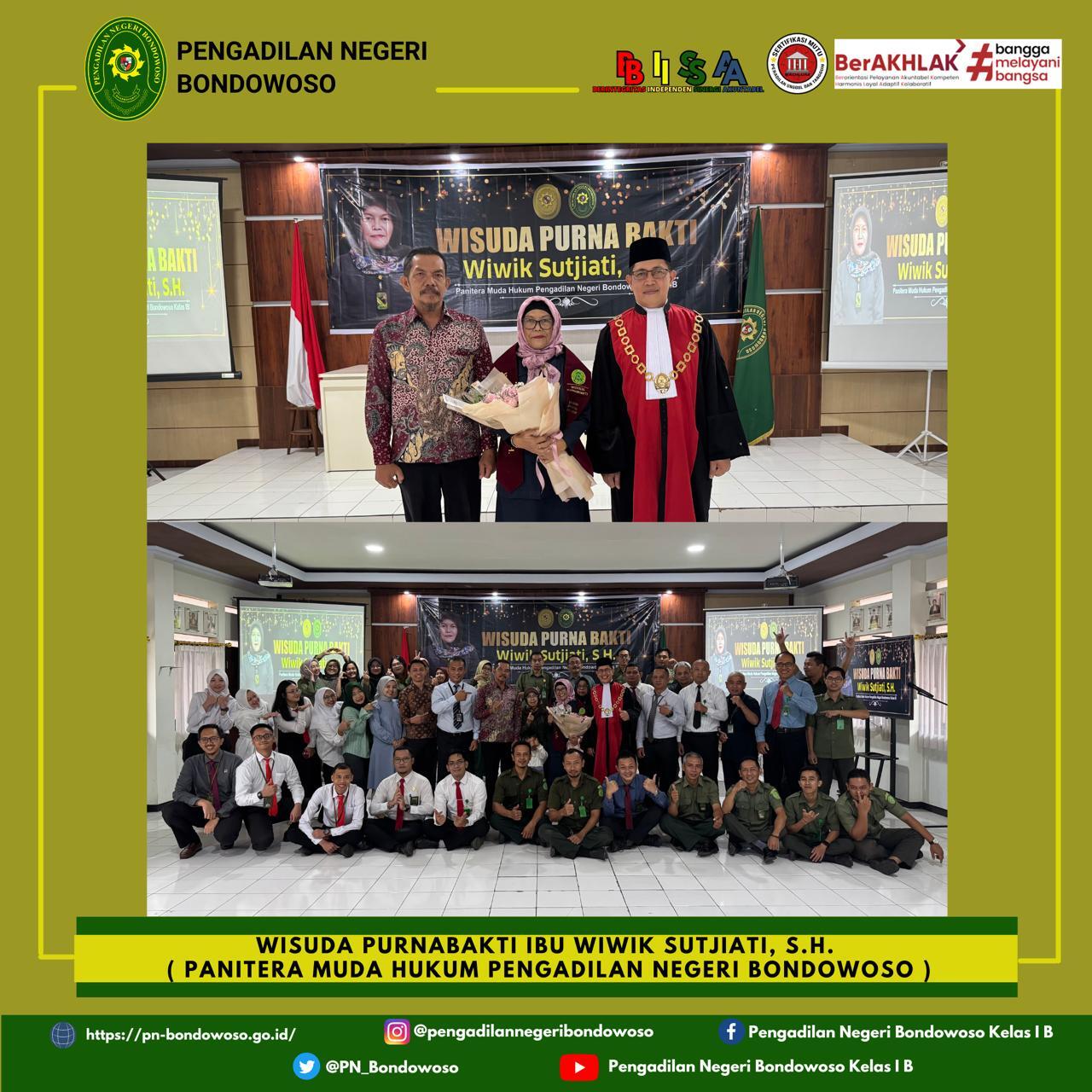 Pengadilan Negeri Bondowoso menggelar pelaksanaan acara Wisuda Purnabakti Ibu Wiwik Sutjiati, S.H. (Panitera Muda Hukum Pengadilan Negeri Bondowoso) di Aula Pengadilan Negeri Bondowoso.