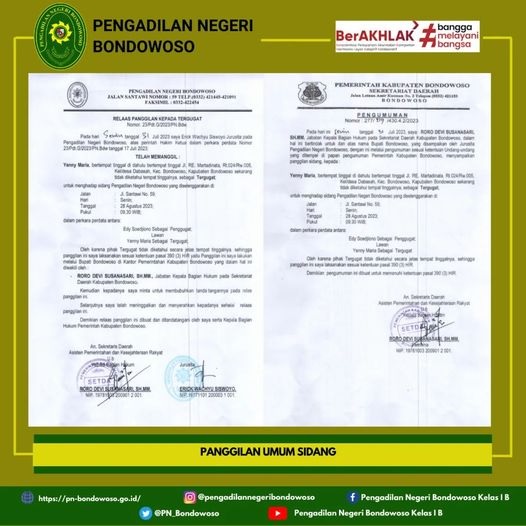 Panggilan Umum Sidang Perkara Perdata Nomor 23/Pdt.G/2023/PN Bdw kepada Yenny Maria